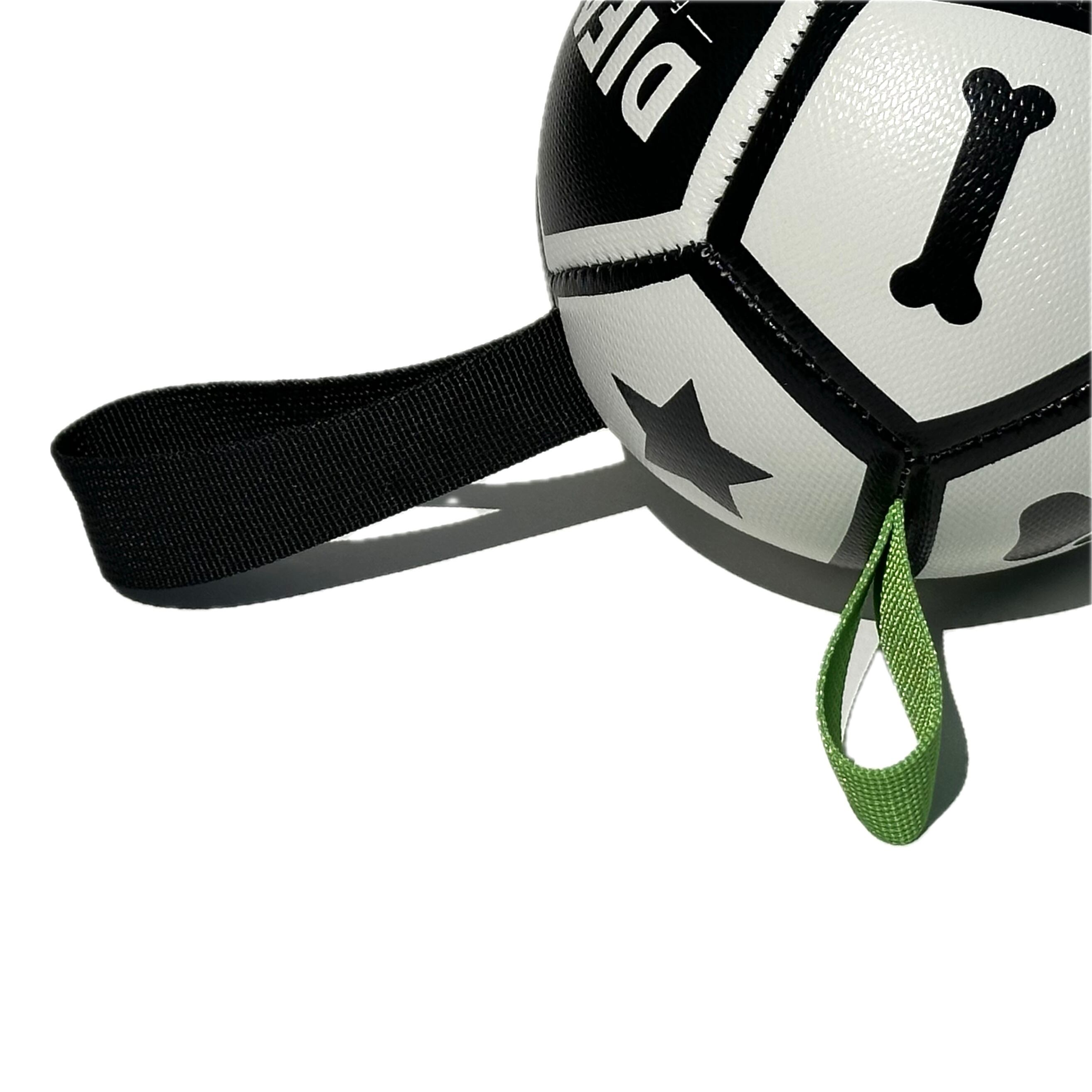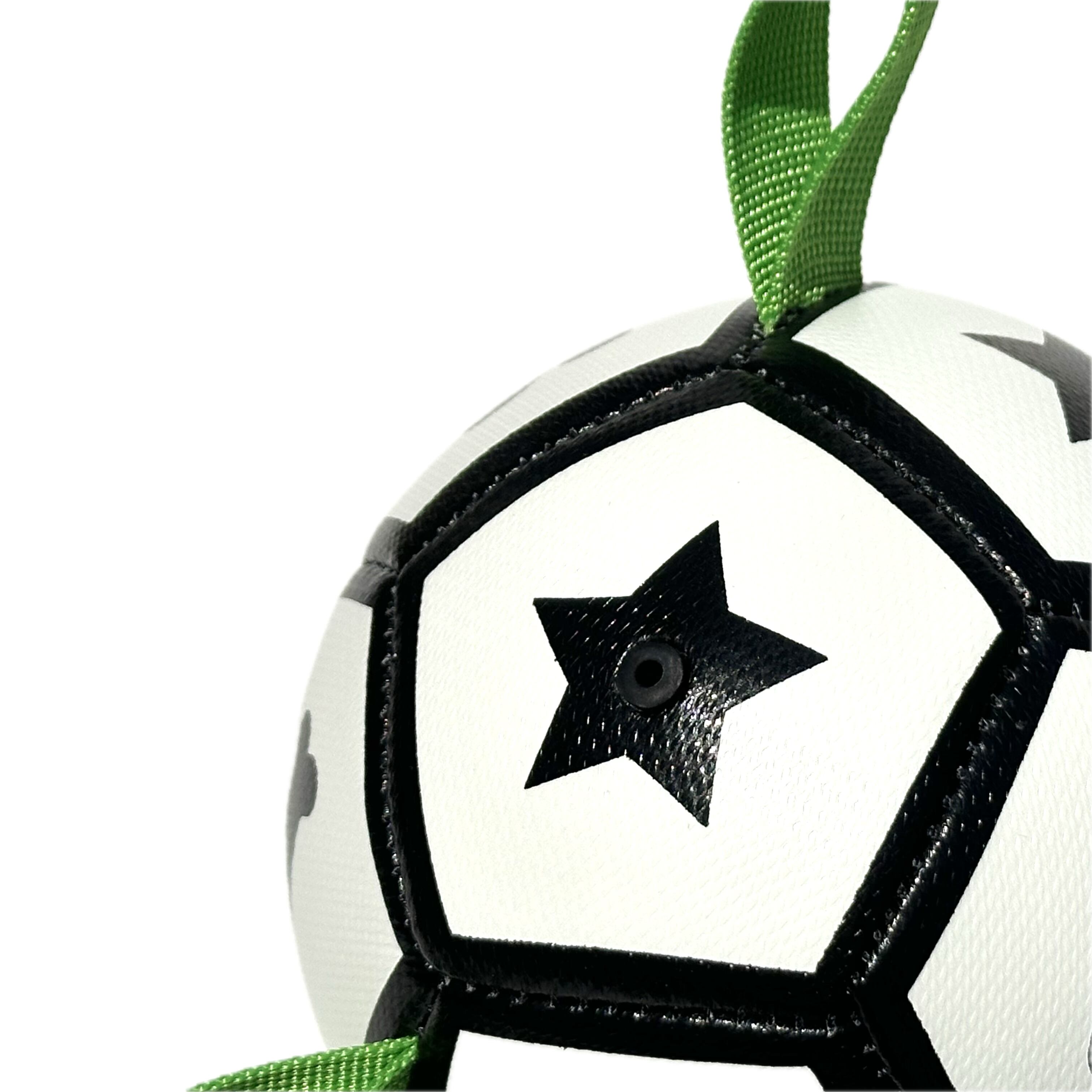 ナイロンタブ付きのクラシックサッカーボール型のおもちゃになります。