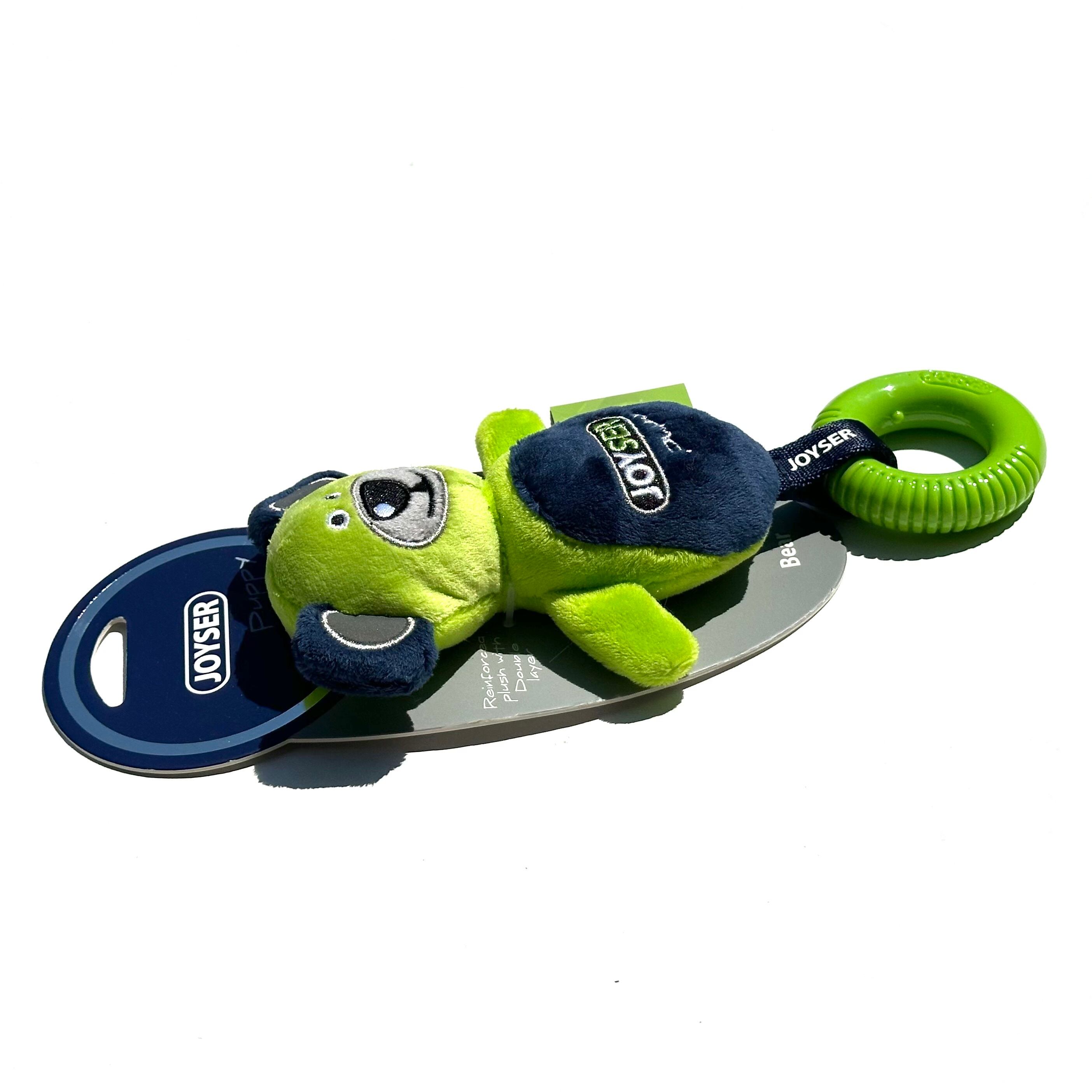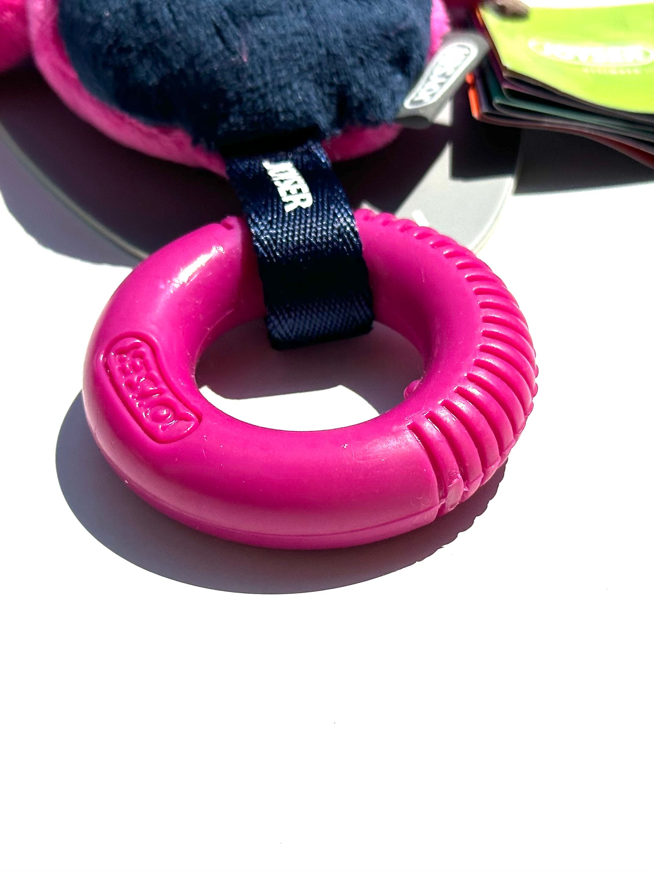 アニマルデザインの丈夫に縫製された、リングが特徴的なおもちゃになります。