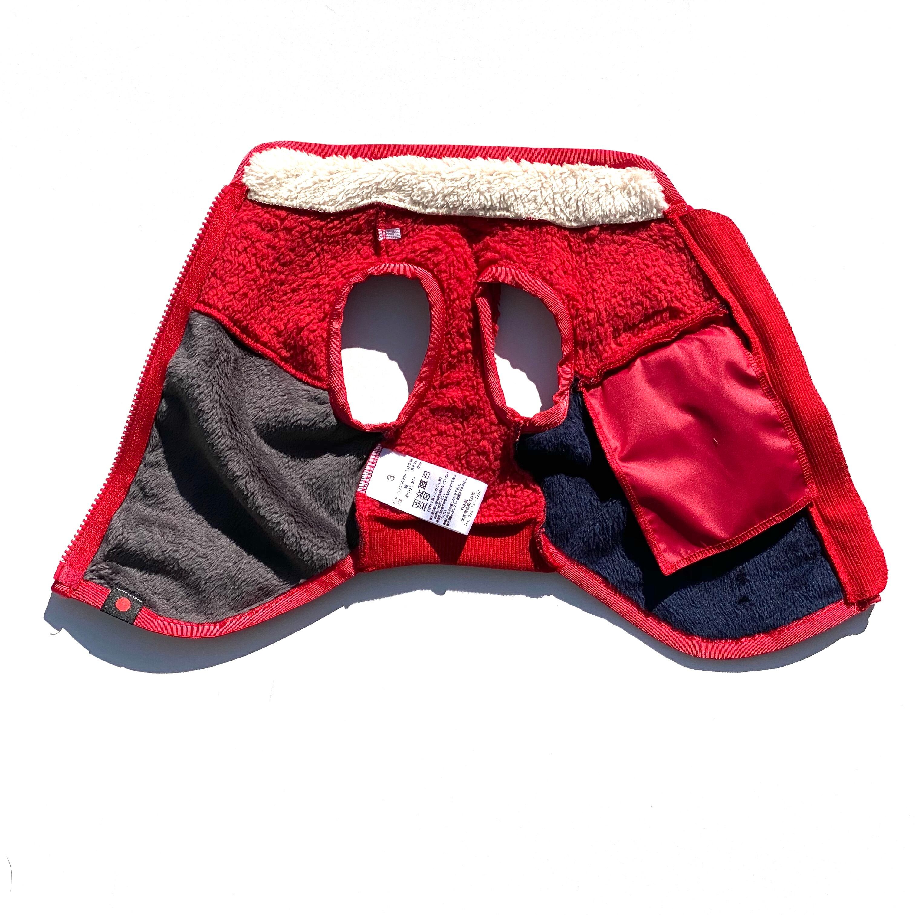 背面上部は、毛足の短いボアフリース生地で