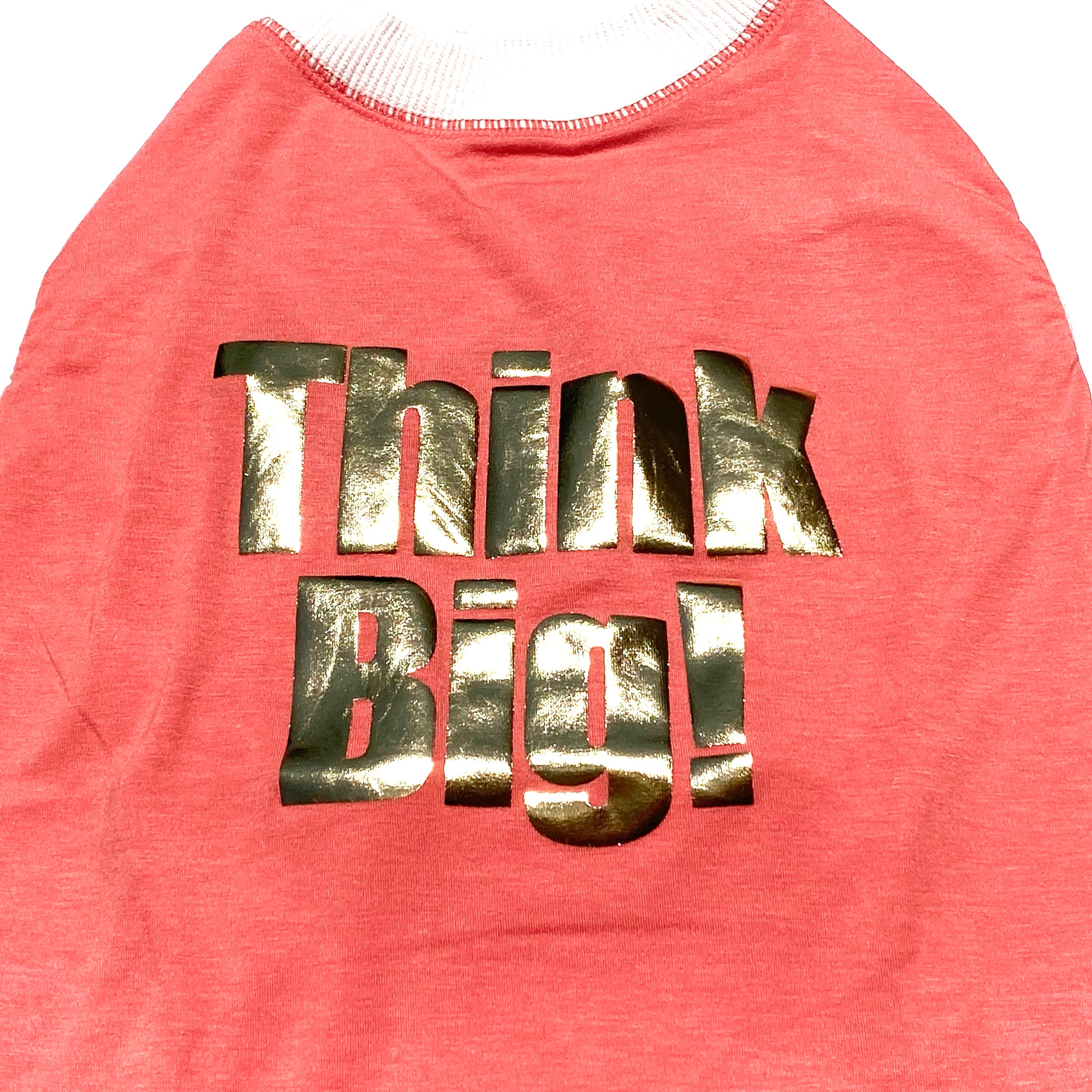 「Think Big! 」ゴシックロゴでゴールドとシルバーの箔プリントが目を引くデザイン